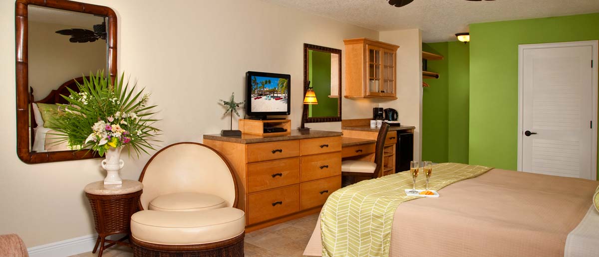 Luxury ocean-view rooms also have a wet bar, fridge, microwave and coffee maker.